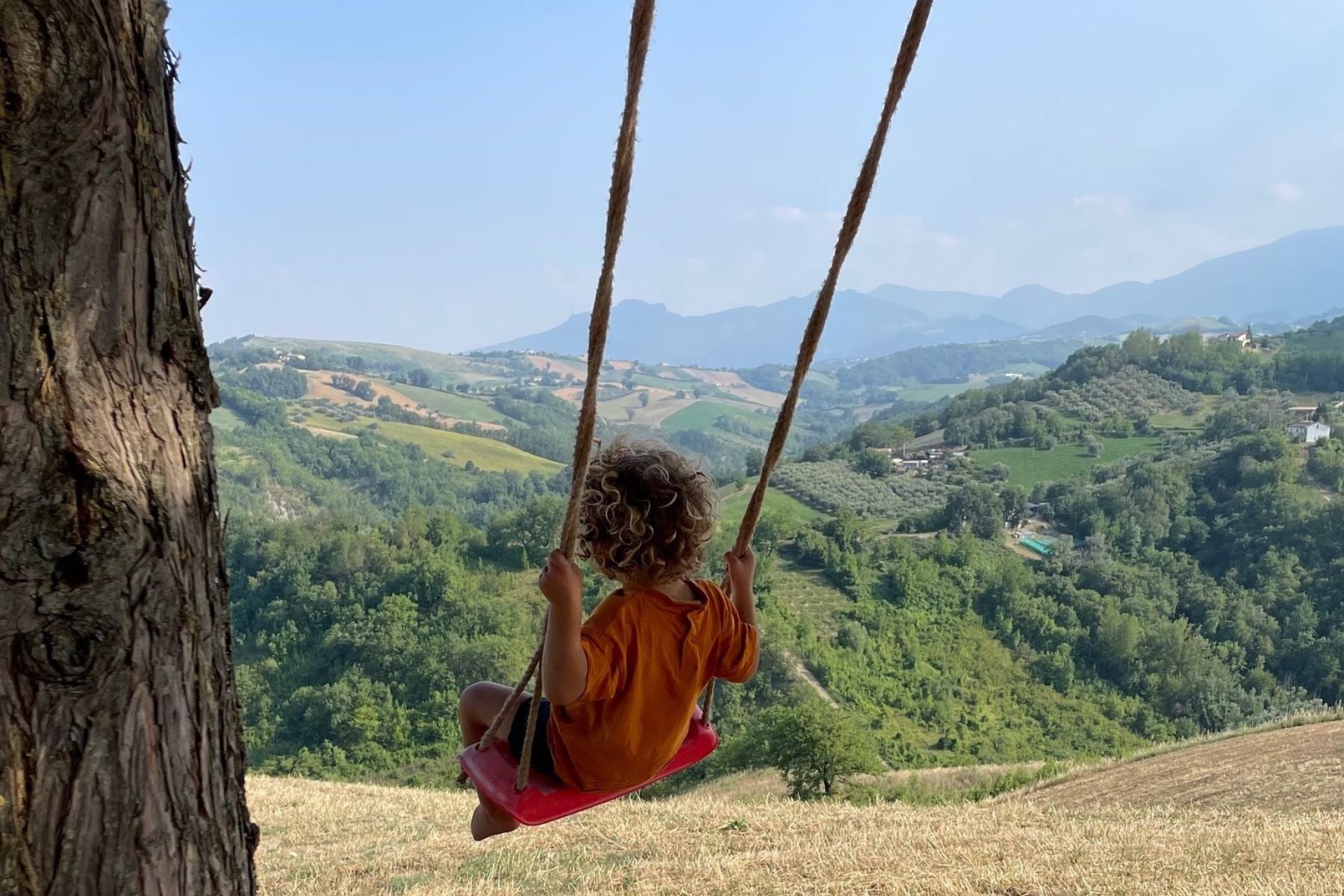 L'altalena is Italian for swing. Our farm in Abruzzo is named after the swings hanging in the pine trees in our garden. Take a seat on the swing and experience an exceptional view on the Gran Sasso mountains.